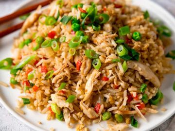 Wok fried rice with your choice of: Vegetables (V,VG), Egg, or Chicken.